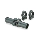 Part of the Bushnell Trophy riflescope series, this 1x28 scope (model 73-0135) is a great choice for hunting in all conditions. The multi-coated, high-contrast Amber-Bright optics provide increased brightness for low-light hunting at dawn or dusk and can help quickly distinguish between a brown tree and a brown critter. It displays a green dot for low light and red dot for bright light. Other features include four dial-in reticles, 100 percent waterproof/fogproof/shockproof construction, and dry nitrogen fill.