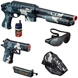 (More customer reviews)hi this is my first review so bear with me.Ok so i would recomend going to the local academy if you have one because its 20 dollars cheaper. the shotgun is awsome with the abilaty to hold the trigar and pump and the abilaty to make a spread fire by pumping it twice makes it one of the best shotguns out there.There is a draw back thow it is so powerful that even if you dont put hop up on with .12 gram bb's it flys into the air after 25-40 feet alltho i have used .20 gram bb's i'm not sure wether or not its good for the gun.now about the pistol it's ok not going to hit people at 50 ft put within that its ok if you use .20 gram it will only go about 30 ft but will fly nice and strait.